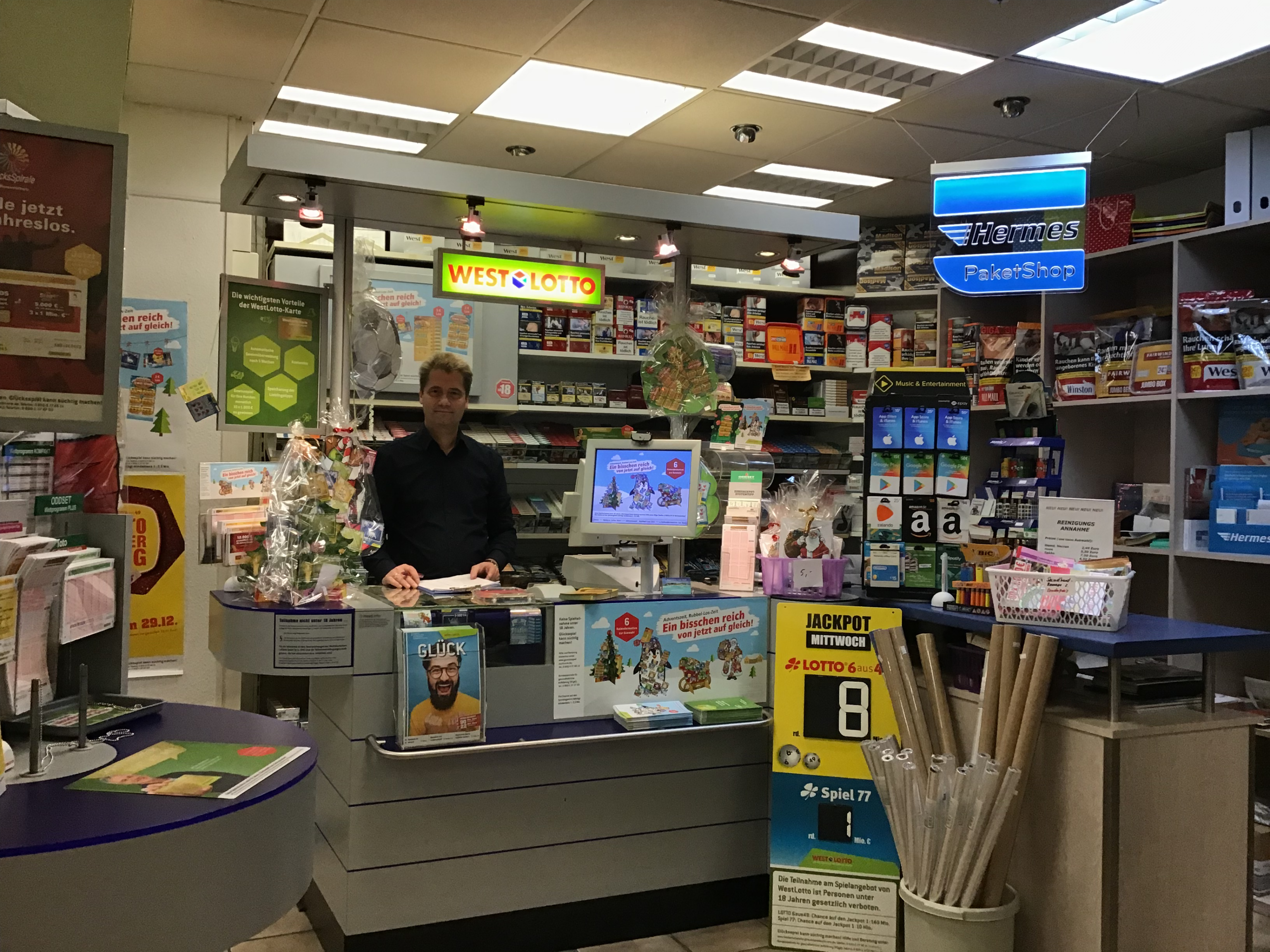 Verkauf von Geschenkartikeln, Modeartikel, Schreibwaren, Zeitungen, Takak, Lotto und Reisen.